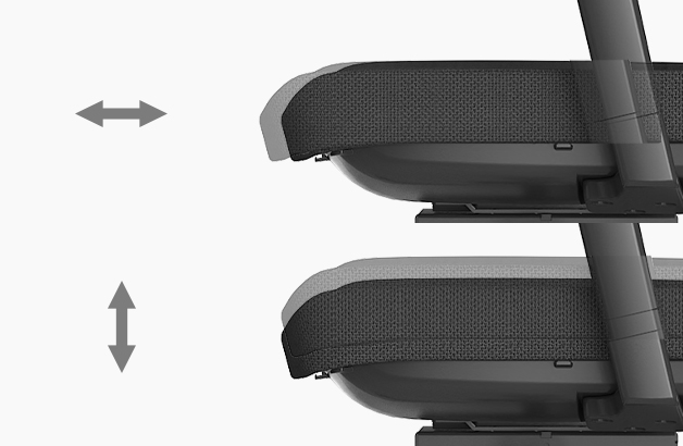 좌판의 측면 레버를 이용하여 사용자의 체형에 맞게 좌판의 깊이와 높이를 조절할 수 있습니다.