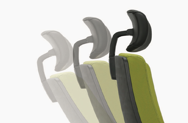 의자에 앉았을 때 헤드레스트의 높이를 조절하여 목 뒤 또는 머리를 받쳐 오랜 시간 작업에도 바른 자세를 유도하여 목의 부담을 줄여줍니다.