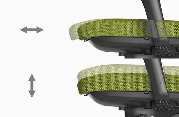좌판의 측면 레버를 이용하여 사용자의 체형에 맞게 좌판의 깊이와 높이를 조절할 수 있습니다.