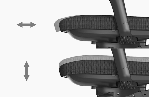 좌판의 측면 레버를 이용하여 사용자의 체형에 맞게 좌판의 깊이와 높이를 조절할 수 있습니다.