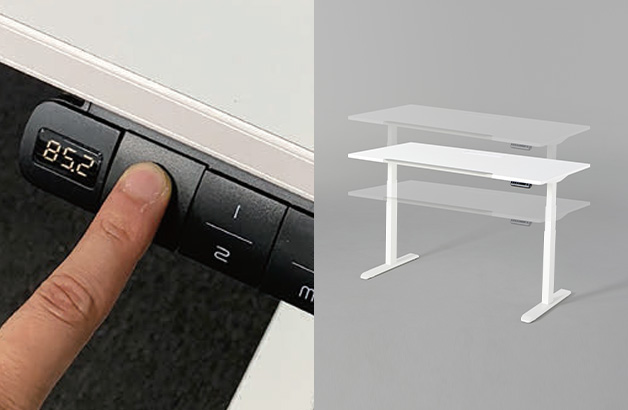 버튼 조작 방식의 컨트롤러로 간편하게 높낮이를 조절할 수 있고 상판의 높이를 확인할 수 있습니다. 또한 자주 사용하는 3개의 책상 높이를 저장할 수 있어 더욱 편리한 사용이 가능합니다.