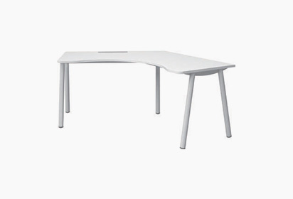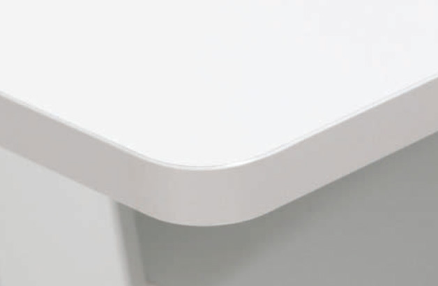 데스크의 전면 코너는 부드러운 곡선 형태로 마감되어 시각적인 안정감을 주며, 편안하고 안전한 환경을 제공합니다.