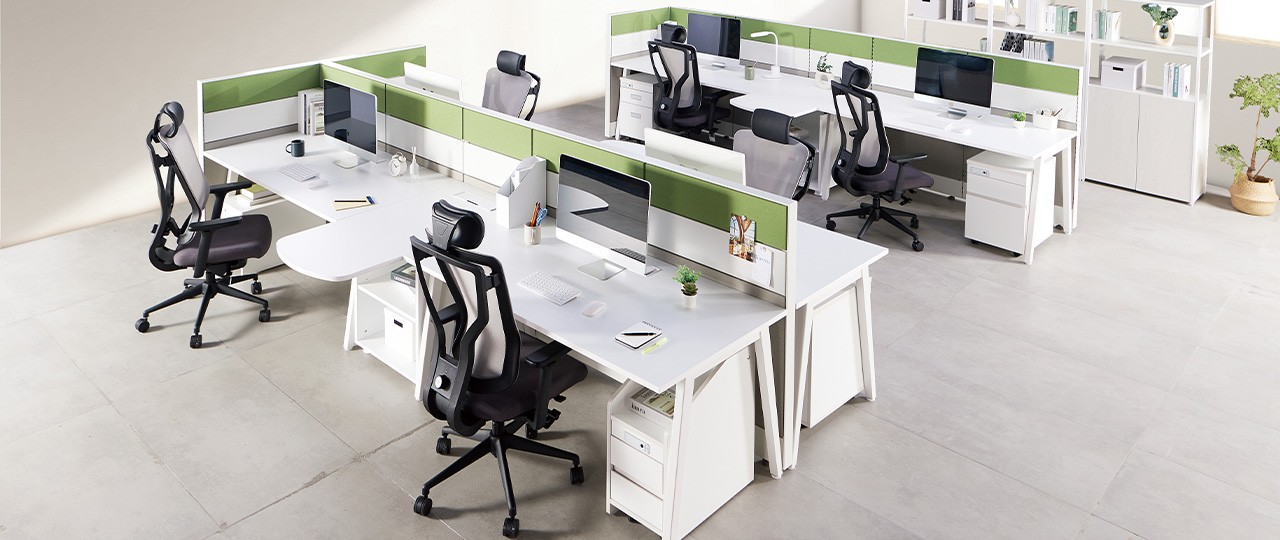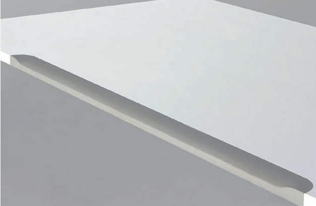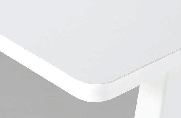 데스크 상판의 전면 코너는 부드러운 라운드 형태로 마감되어 시각적인 안정감을 주며, 편안하고 안전한 환경을 제공합니다.