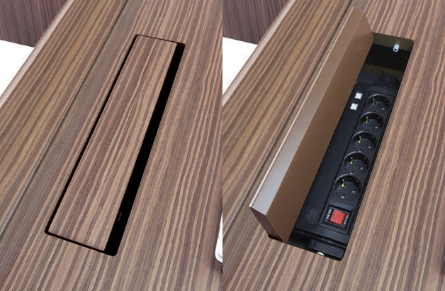 프리젠테이션이 주로 이우러지는 회의공간에서 전자기기의 사용이 용이하도록 전선덕트의 매립으로 깔끔한 배선 관리가 가능하며 정돈된 환경을 만들어드립니다. (*5구 2LAN)