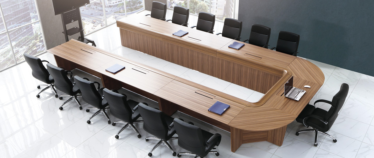 코드는 경쾌한 분위기를 자아내는 무늬목패턴이 인상적인 연결형 회의 테이블입니다. 화음과 같이 여러 사람의 의견을 모아 하나의 기획을 만들어 낼 수 있는 공간을 연출합니다.