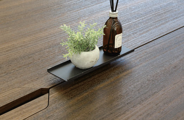 상판 가운데 홈을 이용해 악세서리 선반의 설치가 가능하며 화분을 올려 회의공간의 분위기를 바꾸거나 추가 멀티탭 활용 시 움직이지 않도록 고정시켜 편의성을 높일 수 있습니다.