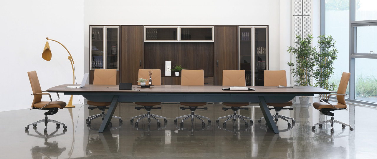 곡선, 직선, 사선의 절묘한 조화로 동양적 미와 서양적미가 품겨지는 테이블 시리즈는 어떠한 회의공간에서도 안정적인 미를 발산합니다.