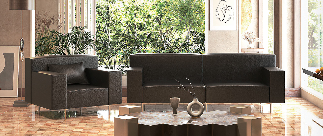 SFC1100 시리즈는 고급스러운 가죽 소재와 현대적인 감각의 스틸 다리가 조화를 이루어 심플하면서도 세련된 공간을 완성합니다.