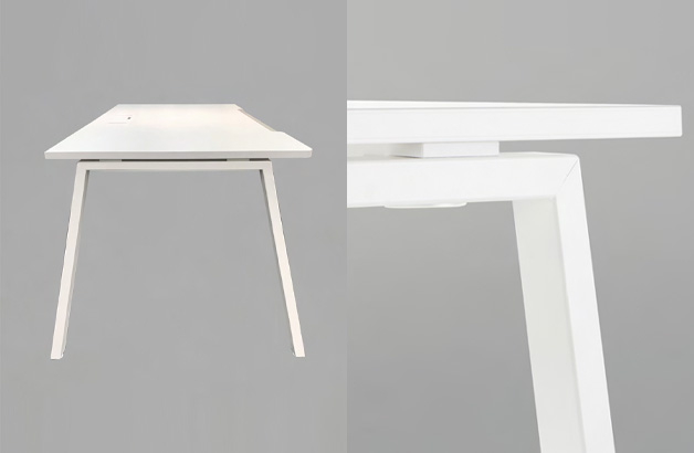 사선으로 내려오는 슬림한 형태의 다리 디자인과 상판과 다리 사이에 틈을 두어 시각적인 개방감과 함께 밝고 경쾌한 분위기의 공간을 연출합니다.