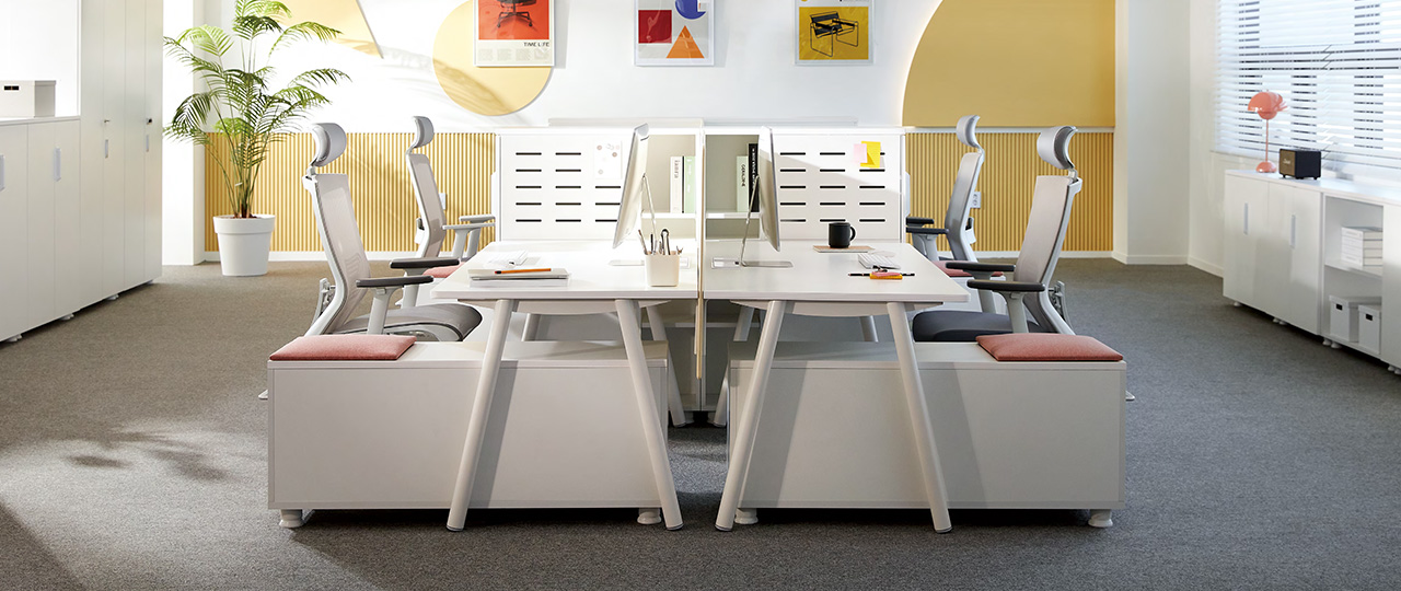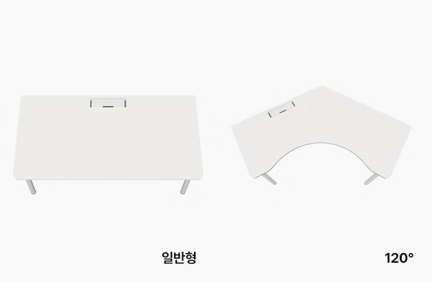 보편적인 오피스 레이아웃을 구성할 때 일반형 데스크를, 팀 커뮤니케이션 강조가 필요한 경우에는 120˚ 데스크를 선택하여 목적에 맞도록 배치할 수 있습니다.