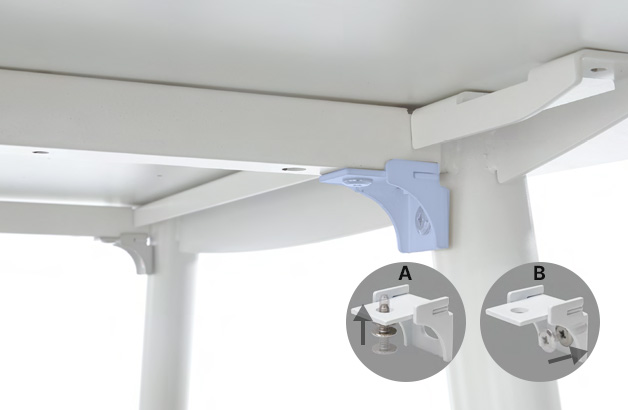 데스크 하부에 높이 조절 시스템을 장착하여 수평 조절이 쉽습니다.