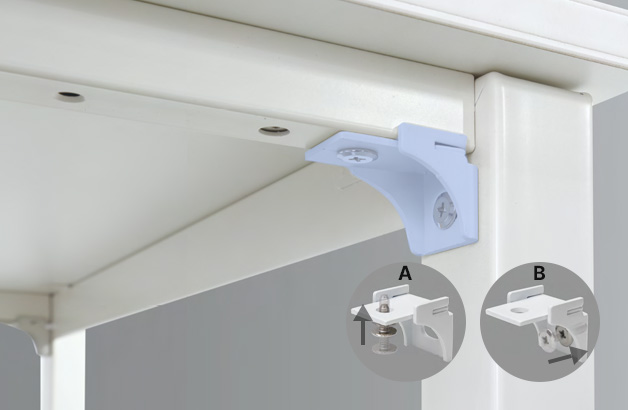 데스크 하부에 높이 조절 시스템을 장착하여 수평 조절이 용이합니다
