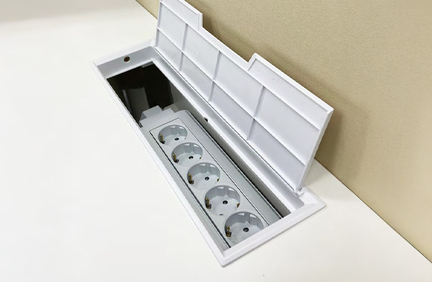 사각 형태의 전선 캡은 업무에 필요한 다양한 기기들의 전선들을 깔끔하게 정돈할 수 있도록 해주고, 스마트폰의 보관도 용이하게 해줍니다.