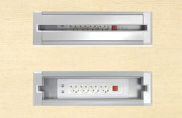 테이블 상판에 멀티탭을 장착하여 회의에 필요한 전자 기기와 통신케이블 연결이 용이합니다.