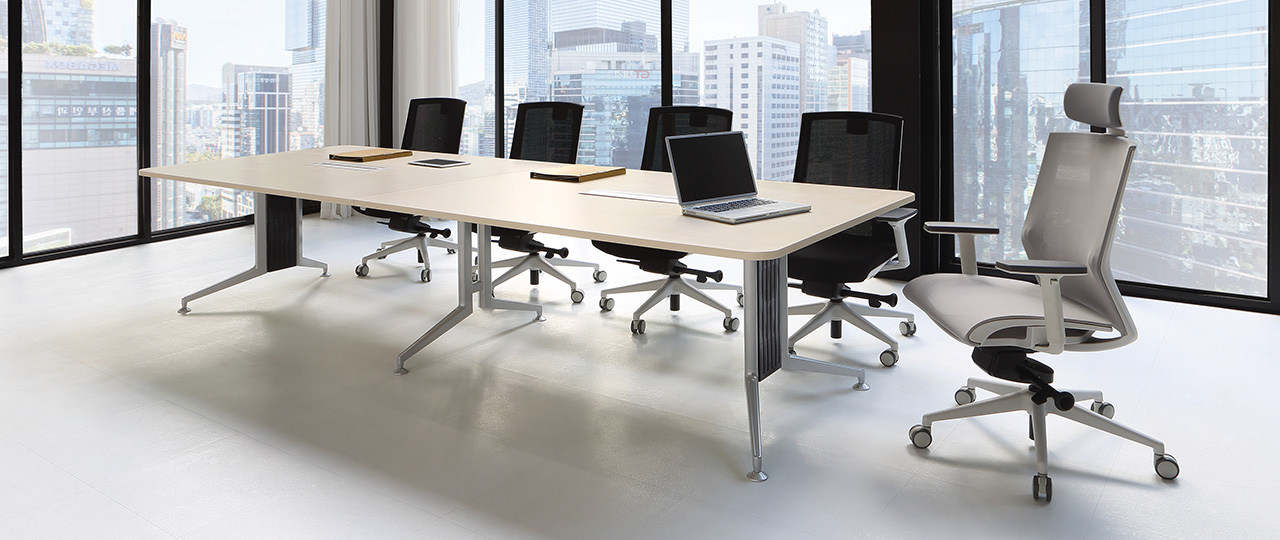 회의용 테이블의 IT 기기 호환성을 높여 장소 구애 없이 누구나 편안하게 의견을 나눌 수 있고 다양한 제품을 통해 회의실 목적과 규모에 알맞은 구성이 가능합니다.