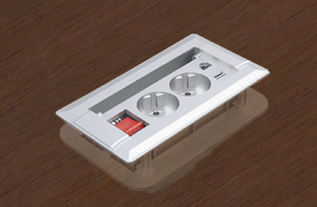 테이블 상판에 원터치 방식의 멀티탭을 장착하여 회의에 필요한 전자 기기와 통신케이블 연결이 용이합니다.
