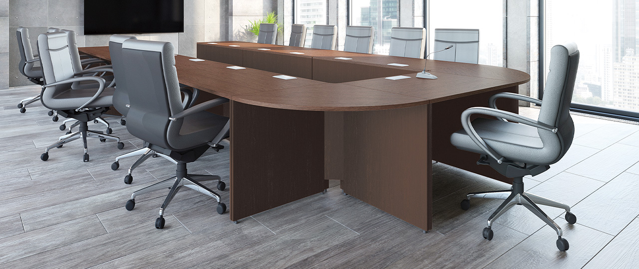 회의용 테이블의 IT 기기 호환성을 높여 장소 구애 없이 누구나 편안하게 의견을 나눌 수 있고 다양한 제품을 통해 회의실 목적과 규모에 알맞은 구성이 가능합니다.