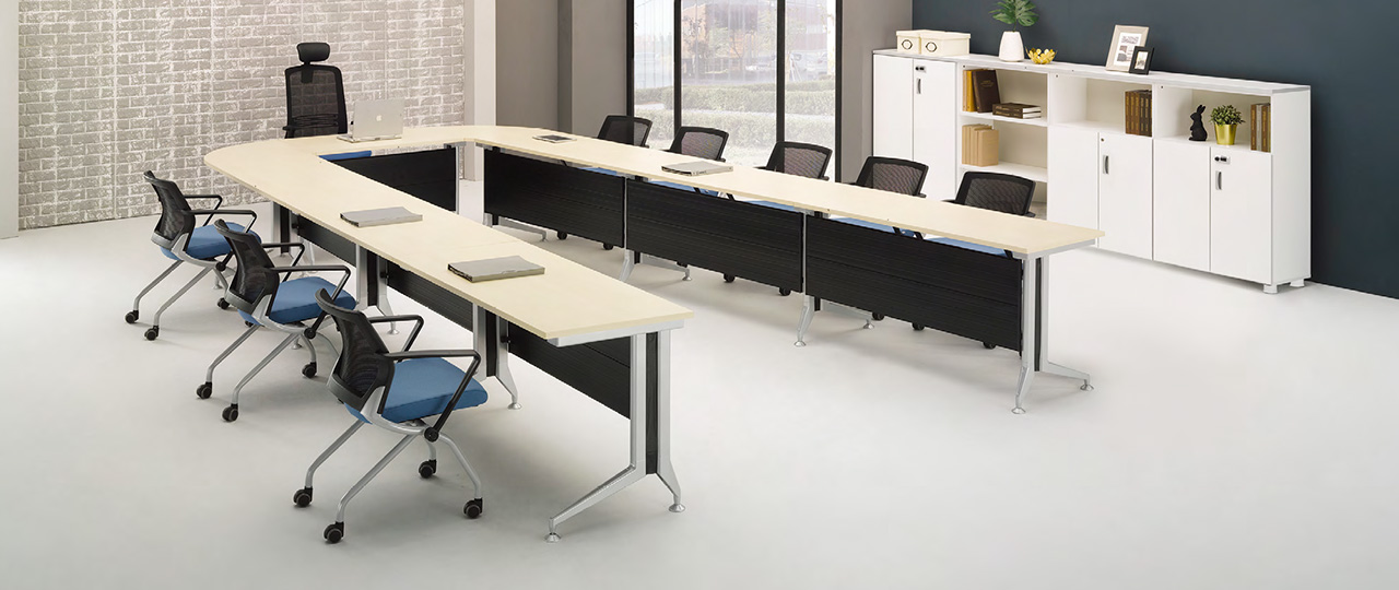 회의용 테이블의 IT 기기 호환성을 높여 장소 구애 없이 누구나 편안하게 의견을 나눌 수 있고 다양한 제품을 통해 회의실 목적과 규모에 알맞은 구성이 가능합니다.