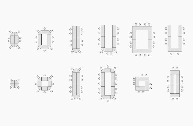 연결형 탁자와 코너형 탁자를 활용하여 다양한 레이아웃 조합이 가능합니다.