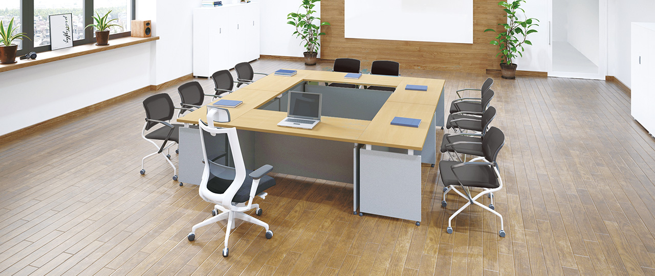 회의용 테이블의 IT 기기 호환성을 높여 장소 구애 없이 누구나 편안하게 의견을 나눌 수 있고 다양한 제품을 통해 회의실 목적과 규모에 알맞은 구성이 가능합니다.