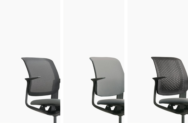 메쉬, 패브릭, 플라스틱 등 세 가지 소재의 등판으로 제작되어 업무 환경과 선호도에 따라 선택할 수 있습니다.