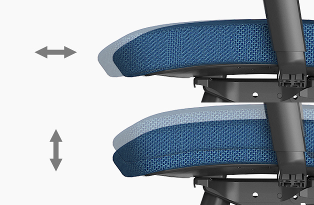 좌판의 측면 레버를 이용하여 사용자의 체형에 맞게 좌판의 깊이와 높이를 조절할 수 있습니다.