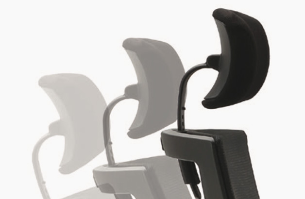 의자에 앉았을 때 헤드레스트의 높이를 조절하여 목 뒤 또는 머리를 받쳐 오랜 시간 작업에도 바른 자세를 유도하여 목의 부담을 줄여줍니다.