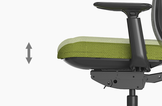 좌판의 측면 레버를 이용하여 사용자의 체형에 맞게 좌판의 깊이와 높이를 조절할 수 있습니다.
