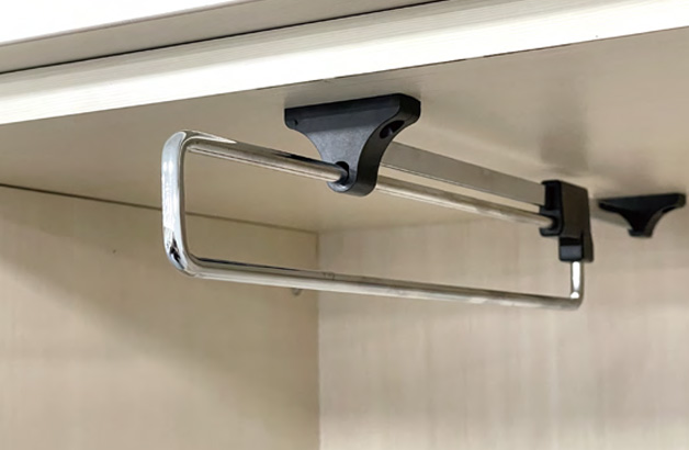 개인 로커 안에는 옷걸이 봉이 부착되어 있어 의류 및 소품을 깔끔하게 정돈할 수 있도록 해줍니다.