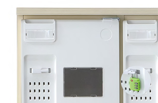 자물쇠의 사용이 가능한 기능성 손잡이는 환풍구가 내장되어 쾌적한 보관이 가능합니다.