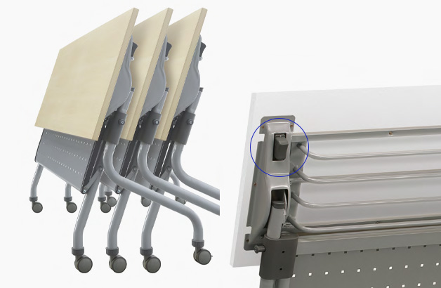 상판 하부의 레버를 조작하면 상판과 프레임 잠금 기능이 해제되어 간편하게 상판을 접을 수 있습니다.