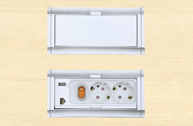 열람대 상판에 매립형 멀티탭을 적용하여 전자 기기를 보다 편리하게 사용할 수 있습니다.