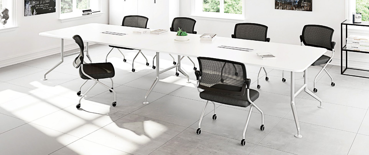 회의용 테이블의 IT 기기 호환성을 높여 장소 구애 없이 누구나 편안하게 의견을 나눌 수 있고 다양한 제품을 통해 회의실 목적과 규모에 알맞은 구성이 가능합니다.