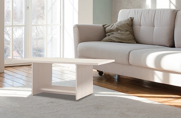 내추럴한 나무결의 무늬를 적용하여 디자인된 소파 테이블은 라운지 공간을 아늑하고 편안하게 느낄 수 있도록 해줍니다.